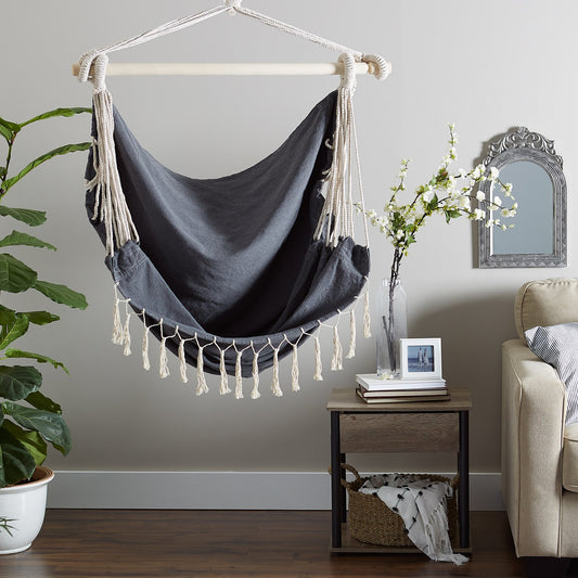 Sold outGray Hammock Chair With Fringe Trim