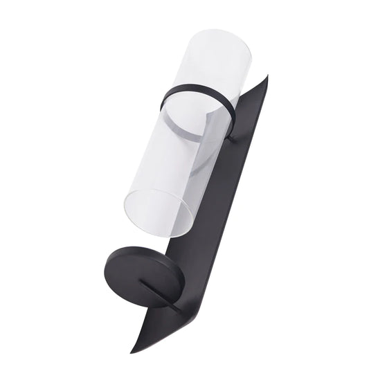 Set Of 2 Metal Pillar Candle Sconces With Glass Inserts