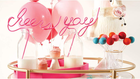 Sippin' Pretty Curly Plastic Word Straw, Cheers Pink
