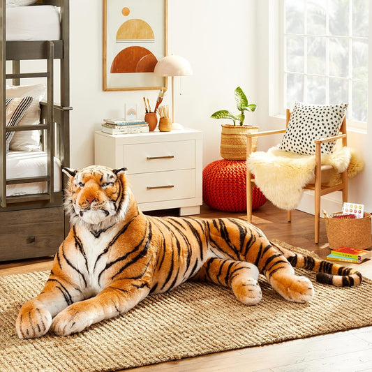Giant Lying Tiger Plush 25" H x 58" L Soft, Cuddly, Realistic and Stuffed Animal - Great Mascot for Tiger Fans