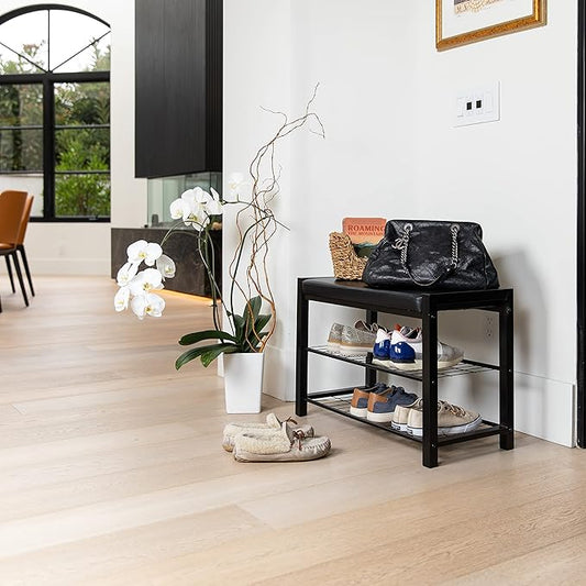 Leatherette Storage Entryway Bench and Shoe Rack with Metal Frame