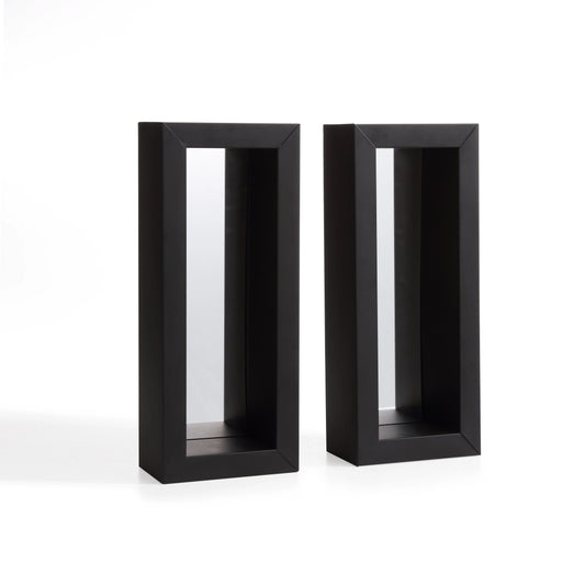 Vertical Mirror Pillar Candle Wall Sconces with Metal Frame (Set of 2)