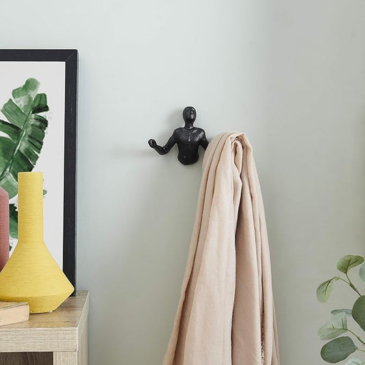 Protruding "Palms Up" Cast Iron Decorative Black Wall Mount Hooks (Set of 2)