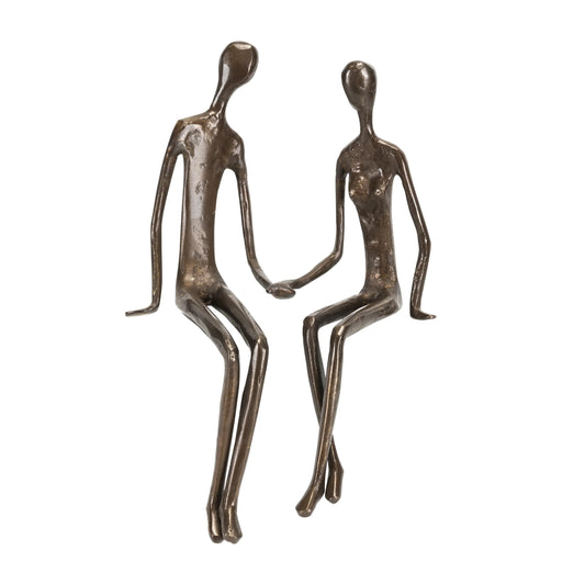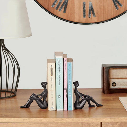 Brown Cast Iron Abstract Sitting Female Sculpture Pair Bookend Set of 2 - Tabletop Figurines For Desks, Accent Tables, or Shelves