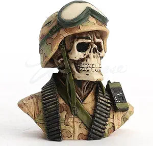 Military Skeleton Half Bust Polystone Miniature Sculpture