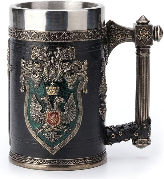 Double Headed Eagle Crest Axe Handle Beer Stein (Stainless Steel Tumbler)