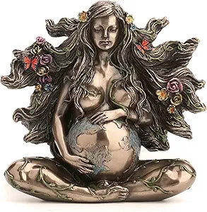 Sitting Pregnant Mother Gaia With Butterflies Bronze Finish Sculpture