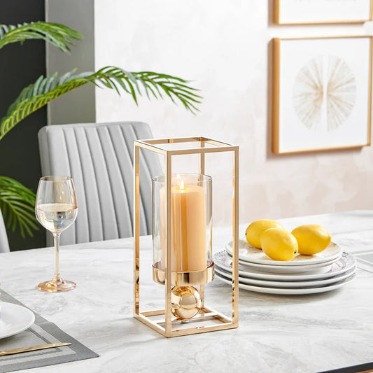Luna Warm Gold Tinted Glass Large Hurricane Candle Holder