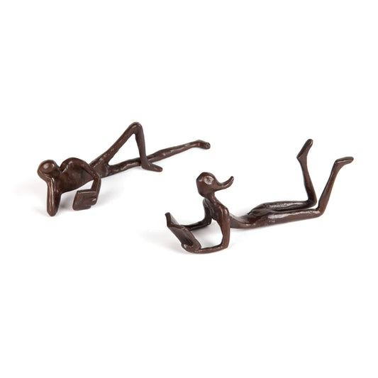 Danya B. Man and Woman Leisurely Reading a Book Bronze Sculptures – Metal Shelf Décor (2 piece set)