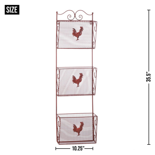 Red Rooster Triple Basket Organizer
