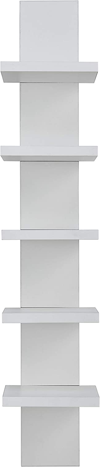 5 Tier Wall Shelf Unit Narrow Smooth Laminate Finish - Vertical Column Shelf