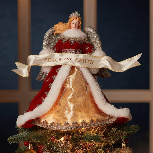 UL 10-Light 14-Inch Lighted Gold And Copper Angel Tree Topper