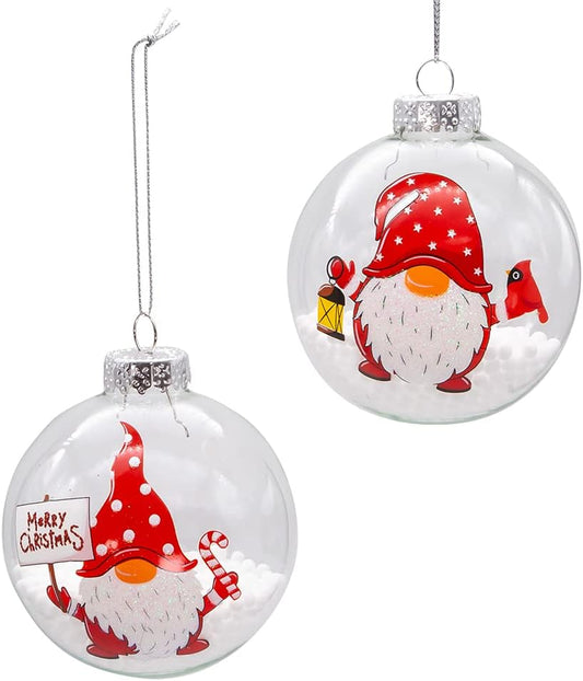 Glass Transparent Gnome 6-Piece Ball Ornament Set