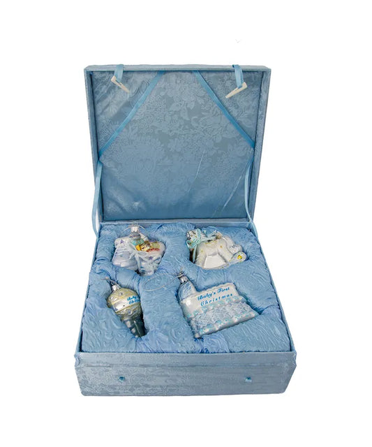 Baby Boy Glass Ornament Set, 4-Piece Box Set