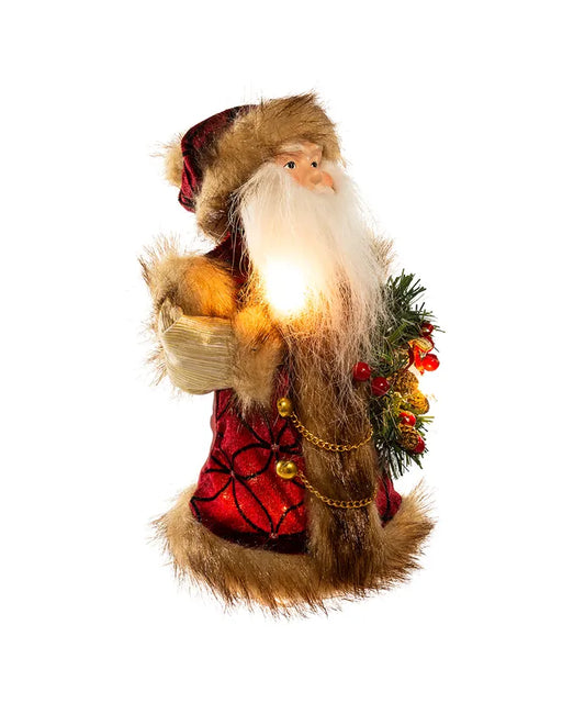 10" UL 10-Light Burgundy And Brown Santa Treetop