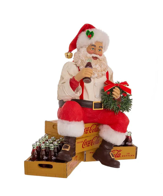 9" Fabriche Coca-Cola Santa Sitting On Crates