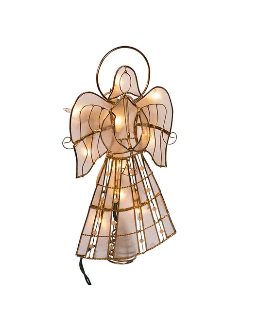 9.75" UL 10-Light Capiz Angel With Vines And Pearls Treetop
