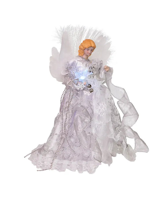 12Inch 7-Light LED Color-Changing Fiber-Optic White And Silver Angel Treetop
