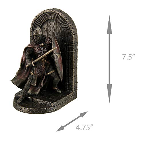 Armored Maltese Crusader With Sword And Shield Guarding Door - Bookend