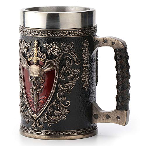 Bronze Winged Sword & Shield Skull Crest Beer Stein Stainless Steel Tumbler
