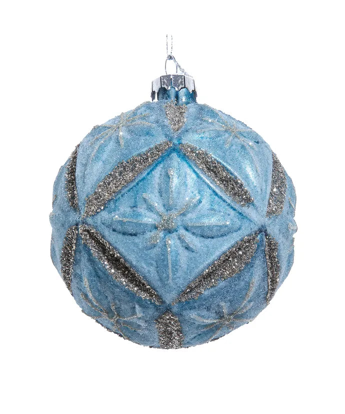 4" Glass Rustic Glam Frosty Blue Ball Ornament