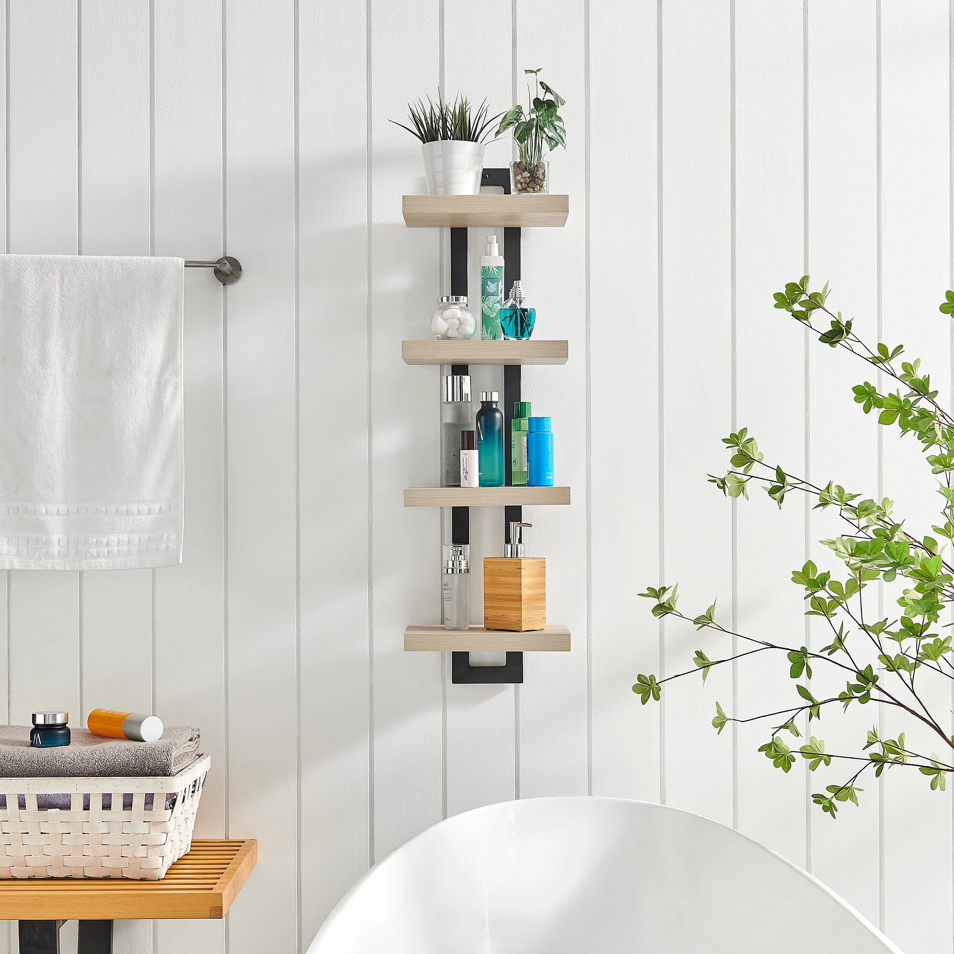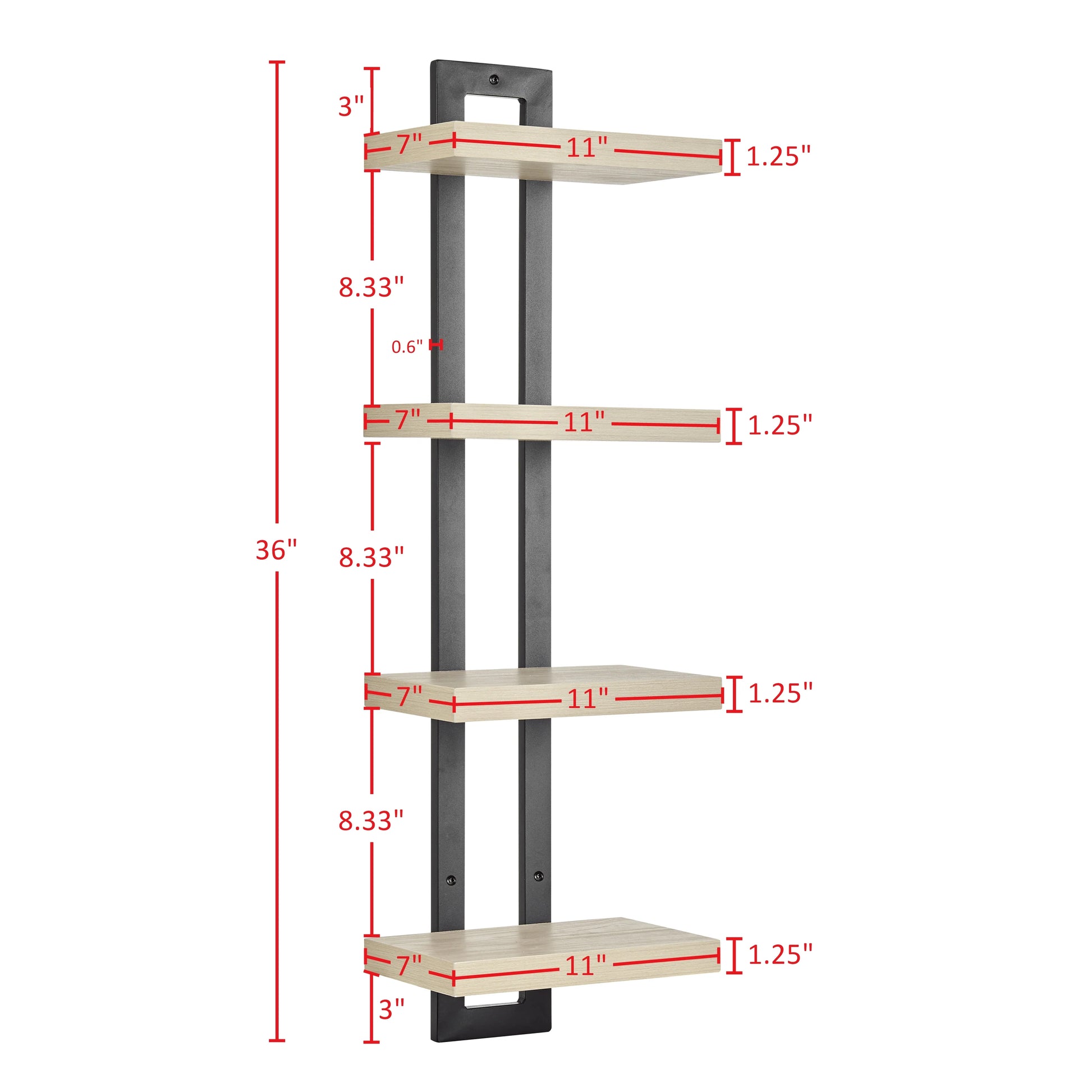 - Features four tiers of floating shelving on a ladder-style bracket to showcase your items with contemporary style in a low-profile design