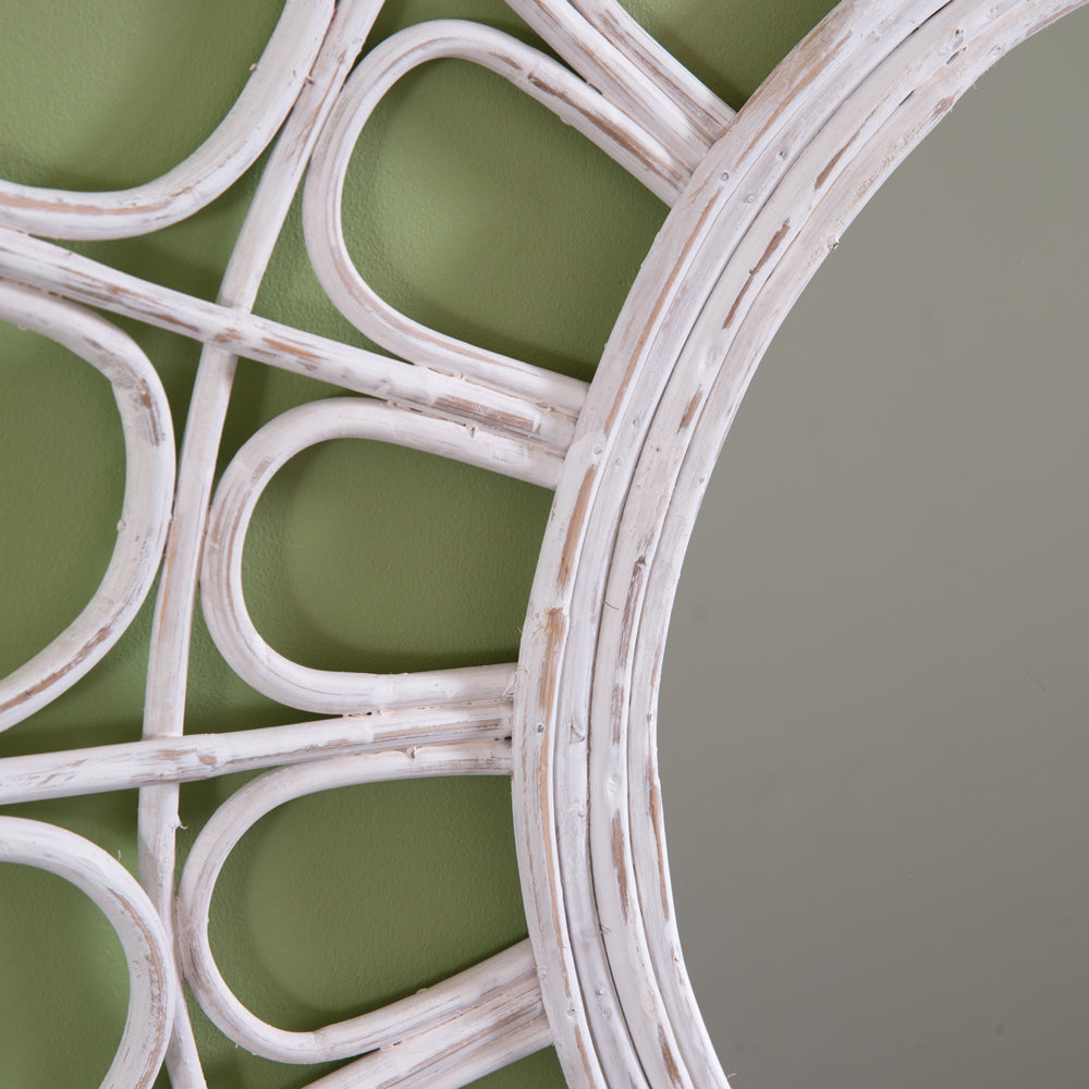 Feature a glimpse of the islands in your own home with this rattan mirror. Hang by itself or in a gallery wall. This item is made out of rattan and hangs with its keyhole hanger.