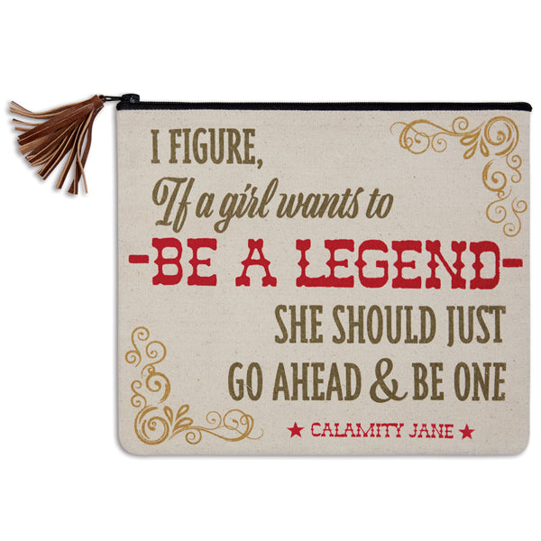 This fun positive message is a perfect gift for anyone. These makeup travel bags are great for storing your toiletries or even a tablet! This bag is made of canvas with a ticking liner and zippered closure. It also features a fun leather tassel pull.