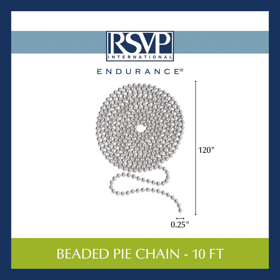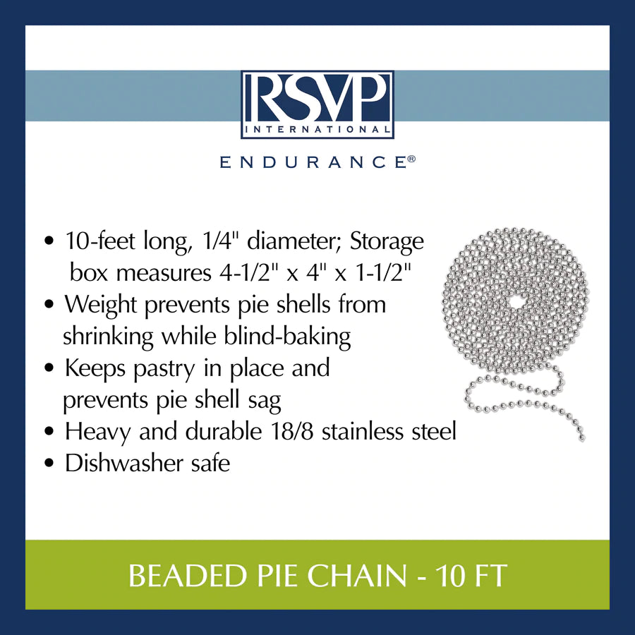 - Nice, heavy pie chain that keeps pastry in place for one-crust pies and prevents pie shell sag.