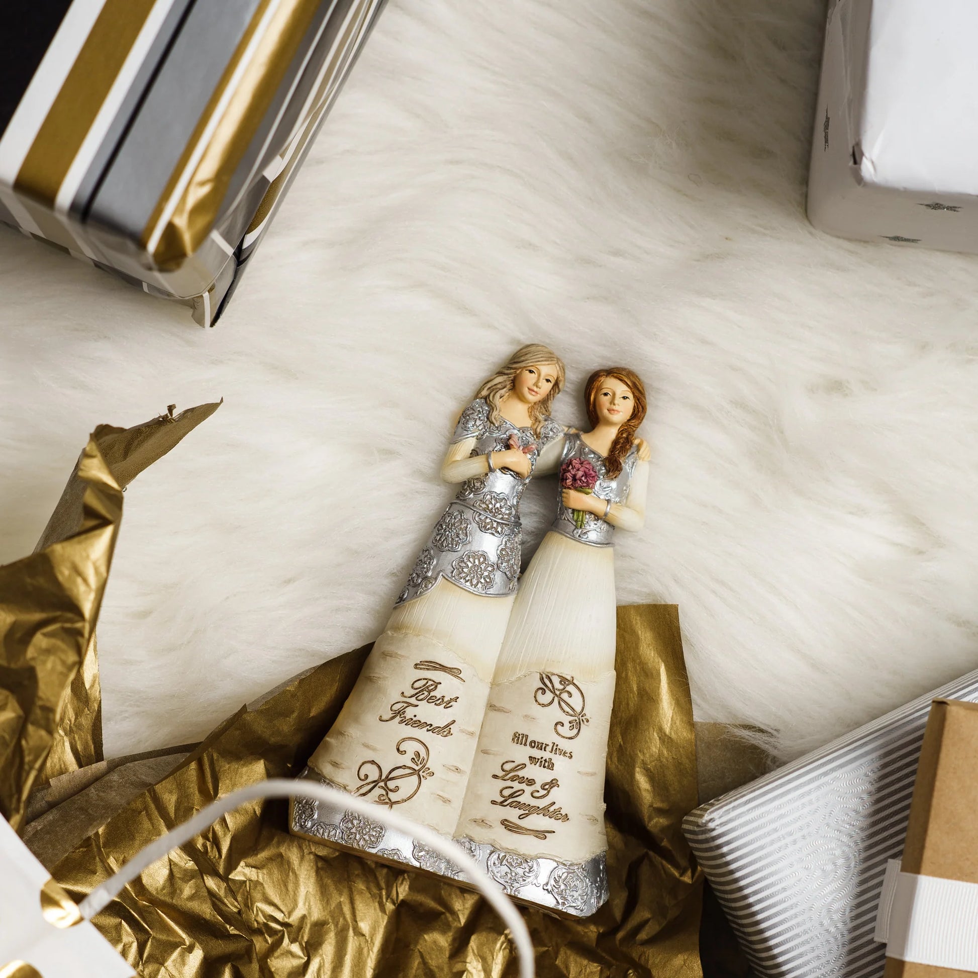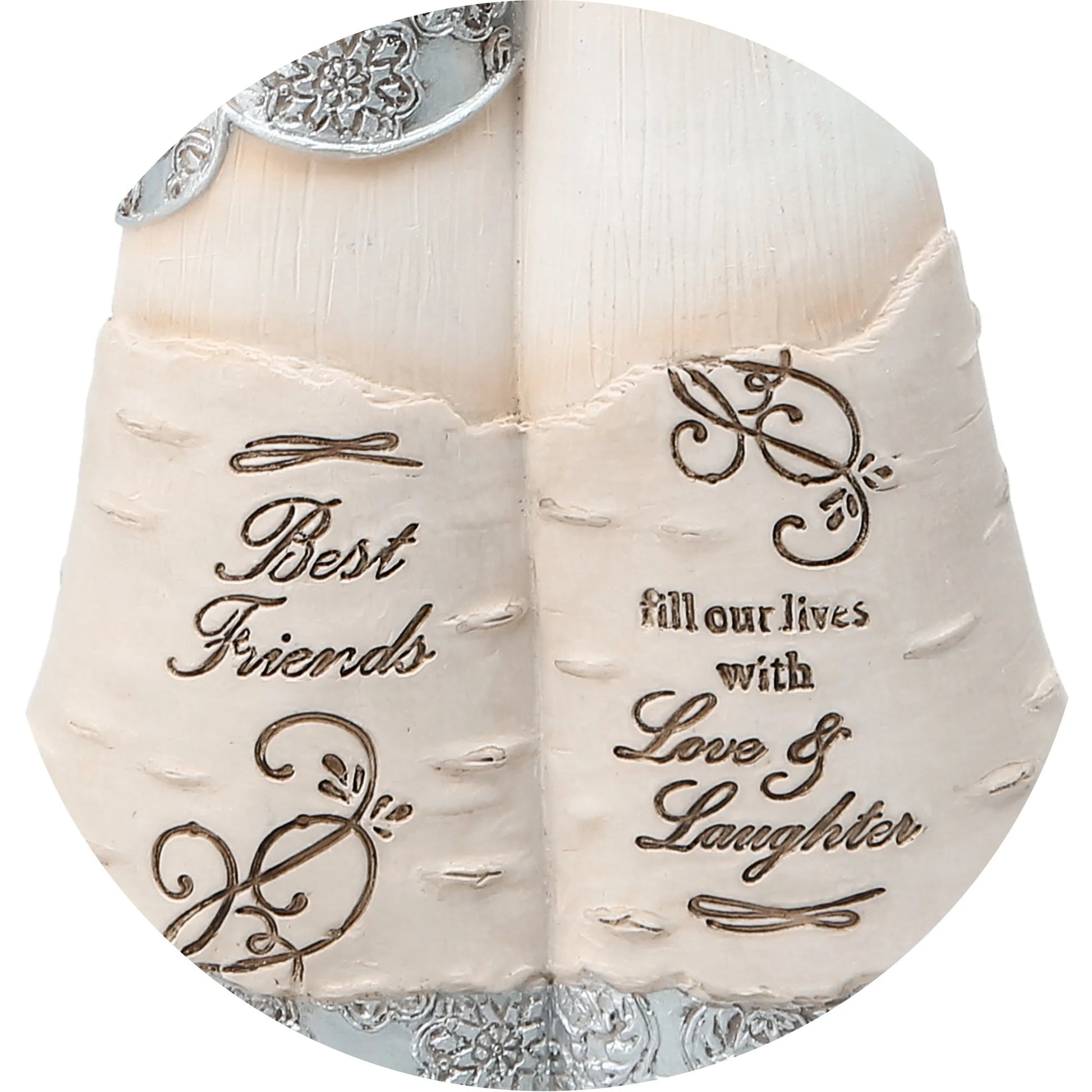 - IN-HOUSE DESIGN: "Best Friends Fill Our Lives With Love & Laughter" text is debossed and hand-painted onto the front of the angel, alongside an intricate silver design and flowers. The foam pads on the bottom to prevent surfaces from being scratched.