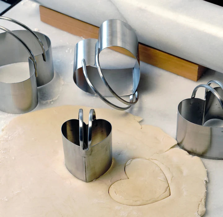 - No dough will go to waste with this classic round set of 4 biscuit cutters, the generous depth and arched handle allows comfortable cutting of thicker biscuits and cookies.
