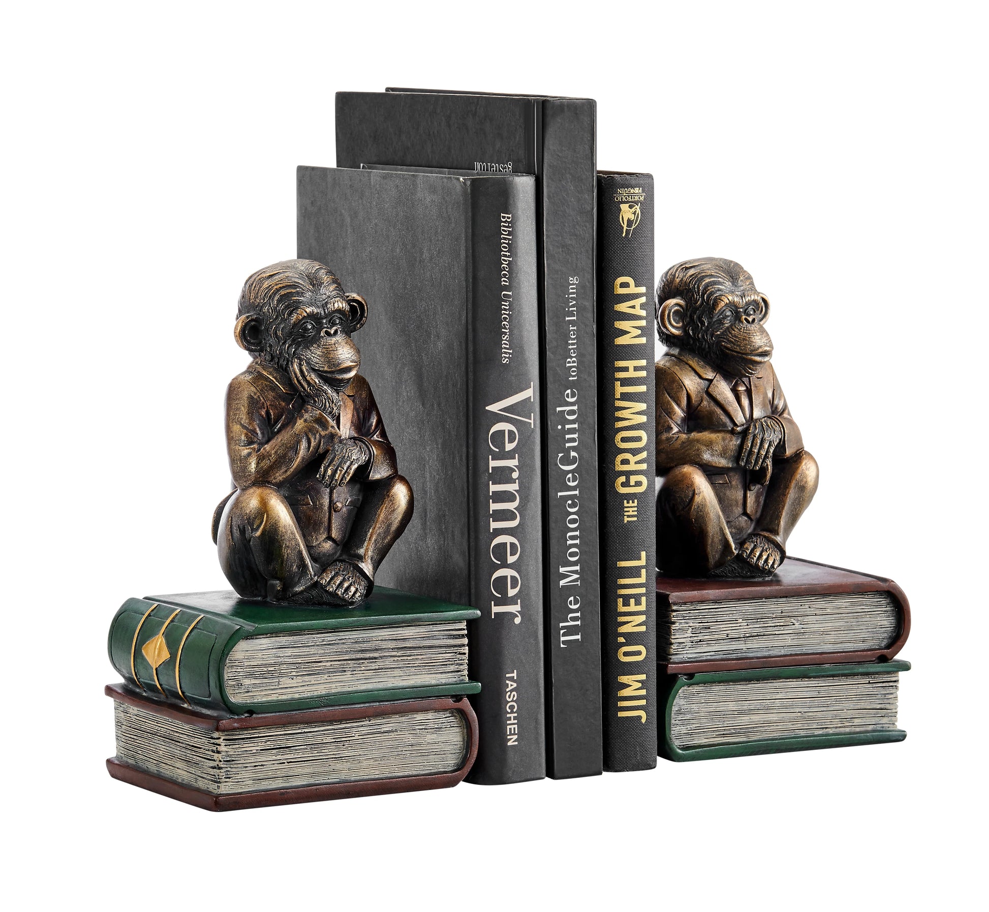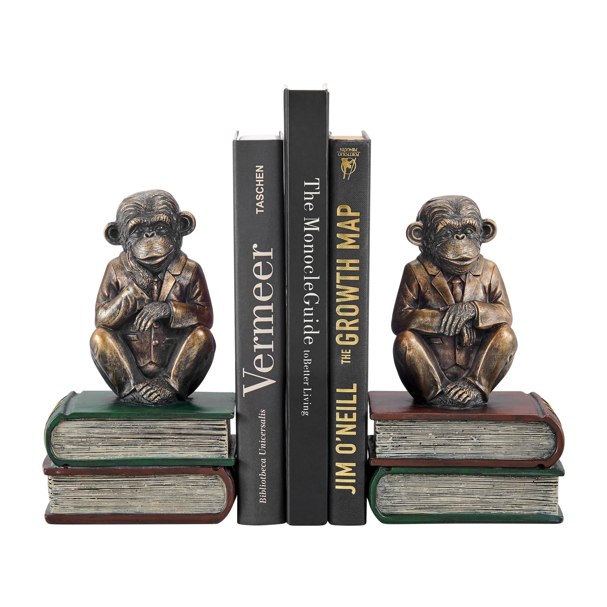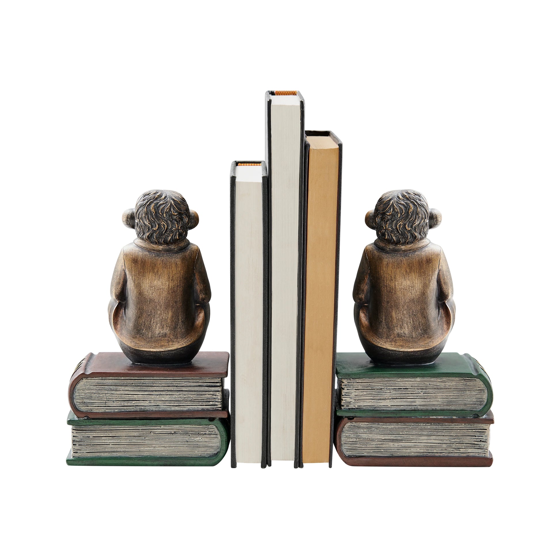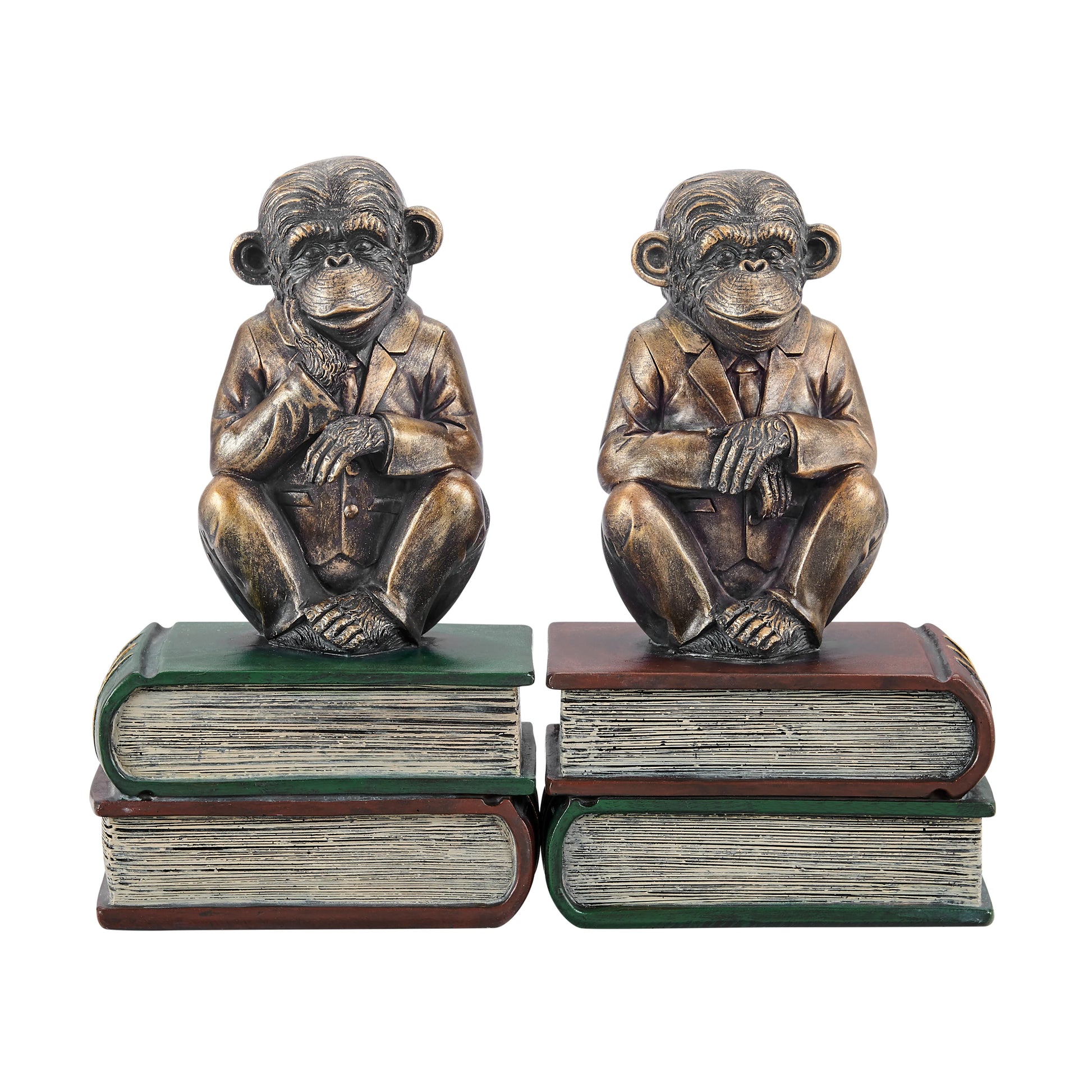 Danya B. Monkeys on Books Polyresin Antique Patina Finish Bookend Set of 2