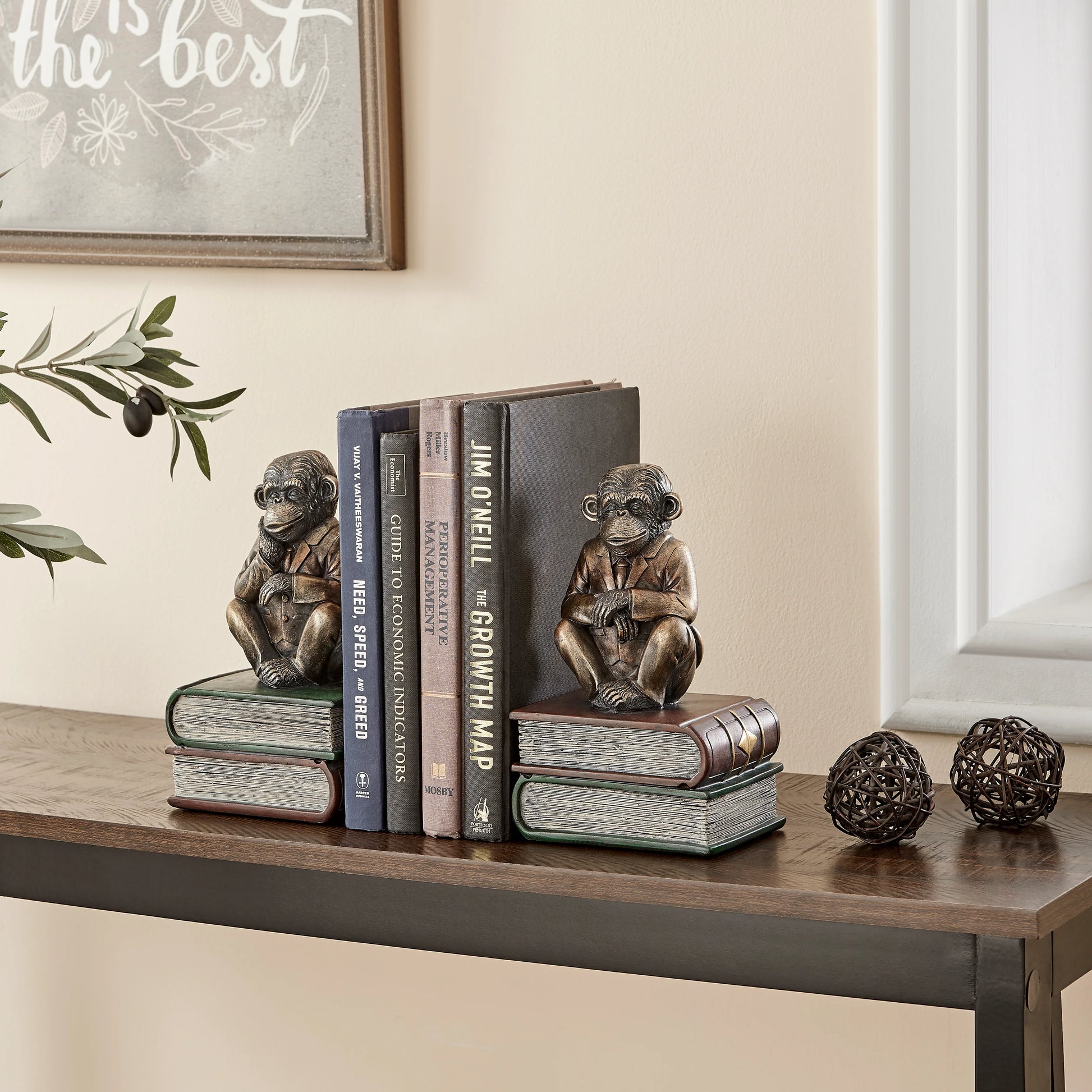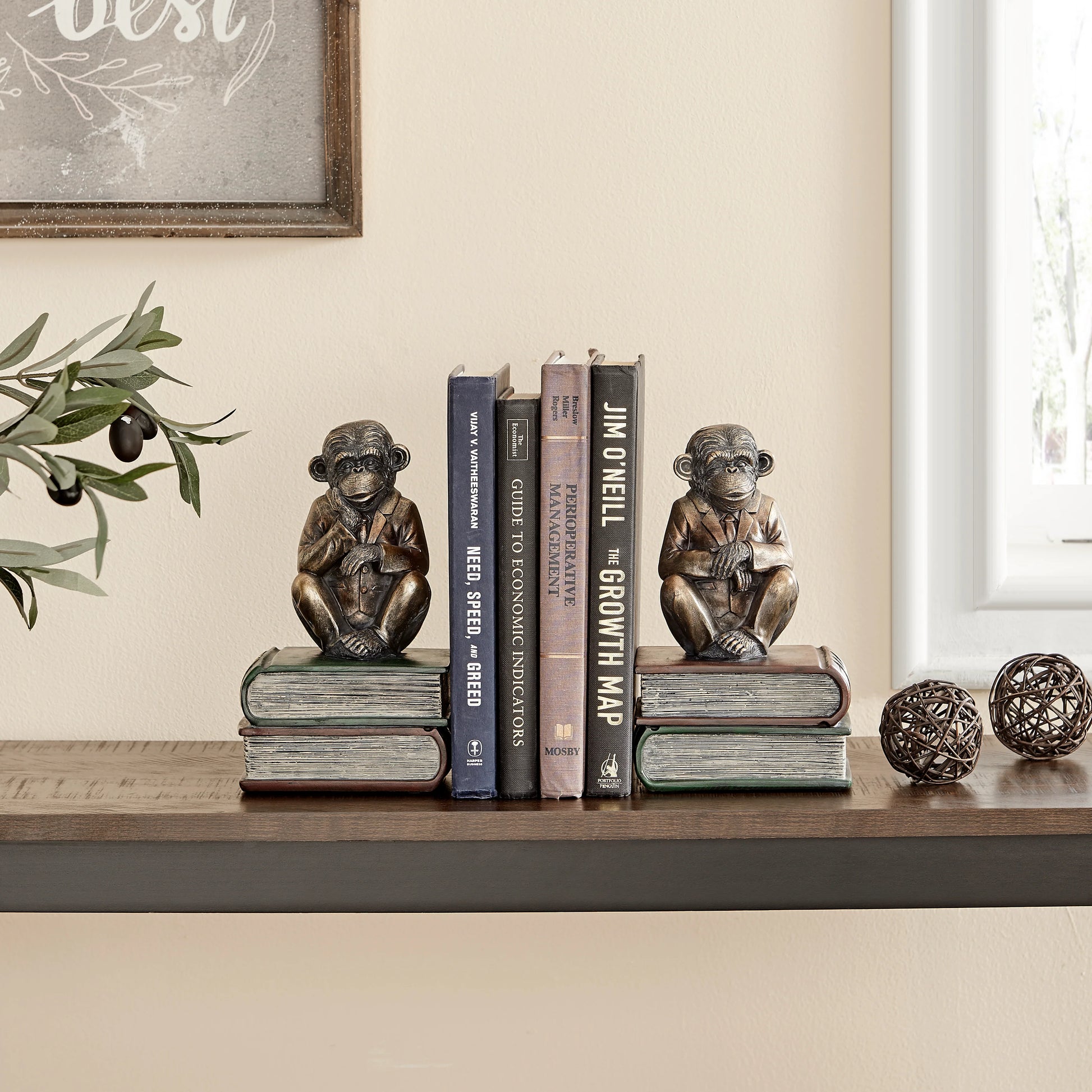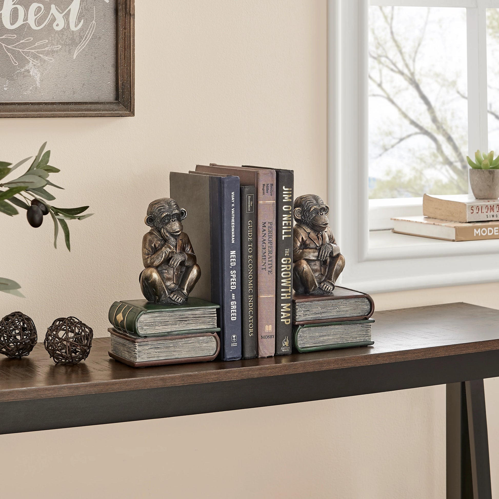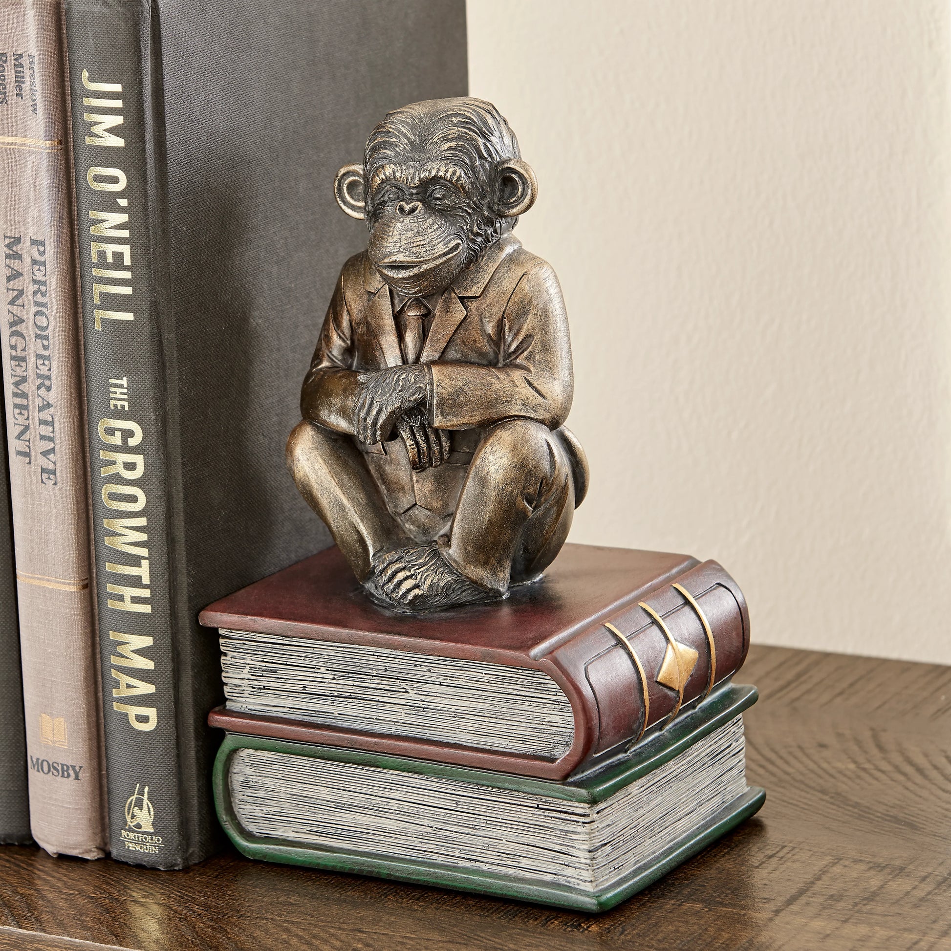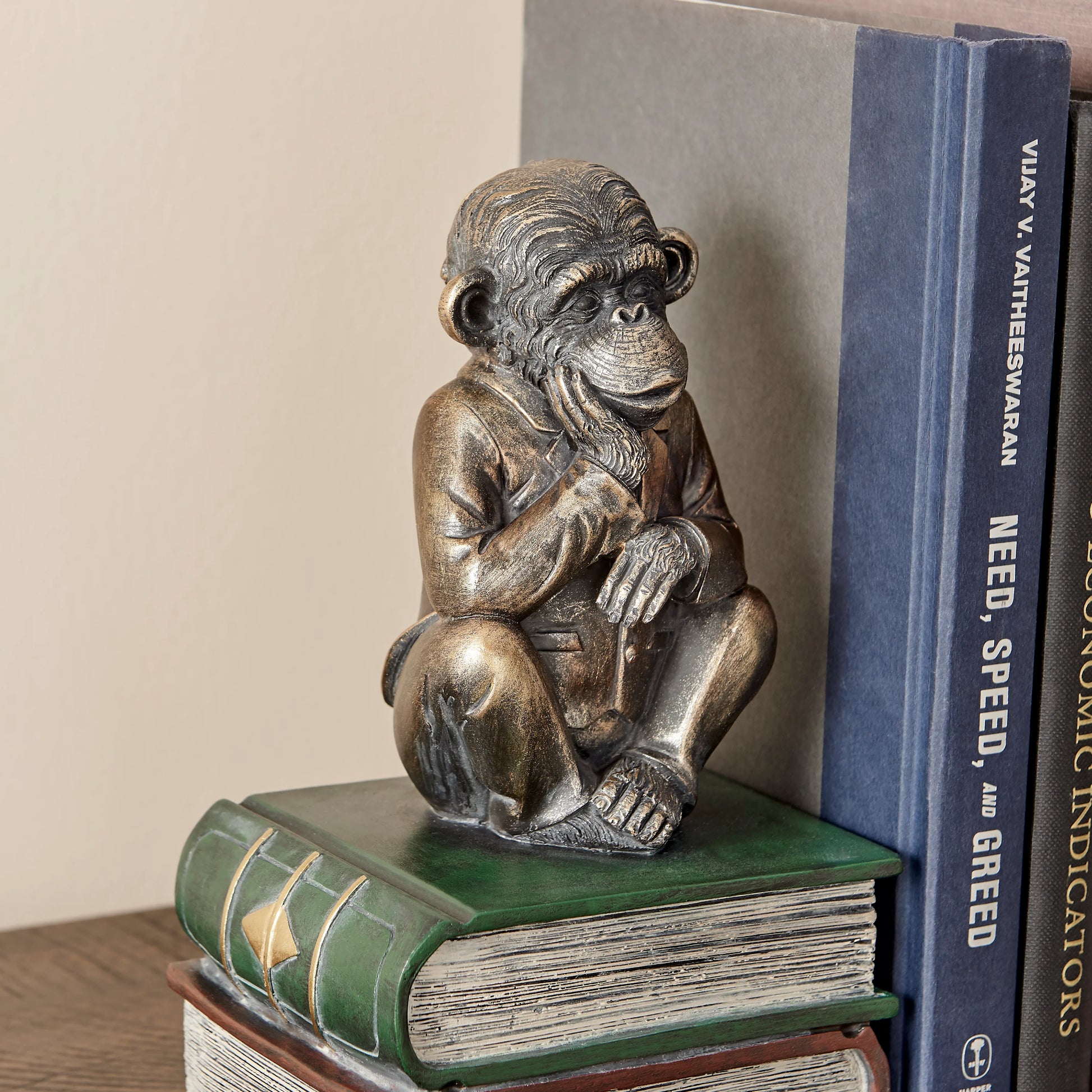 Danya B. Monkeys on Books Polyresin Antique Patina Finish Bookend Set of 2