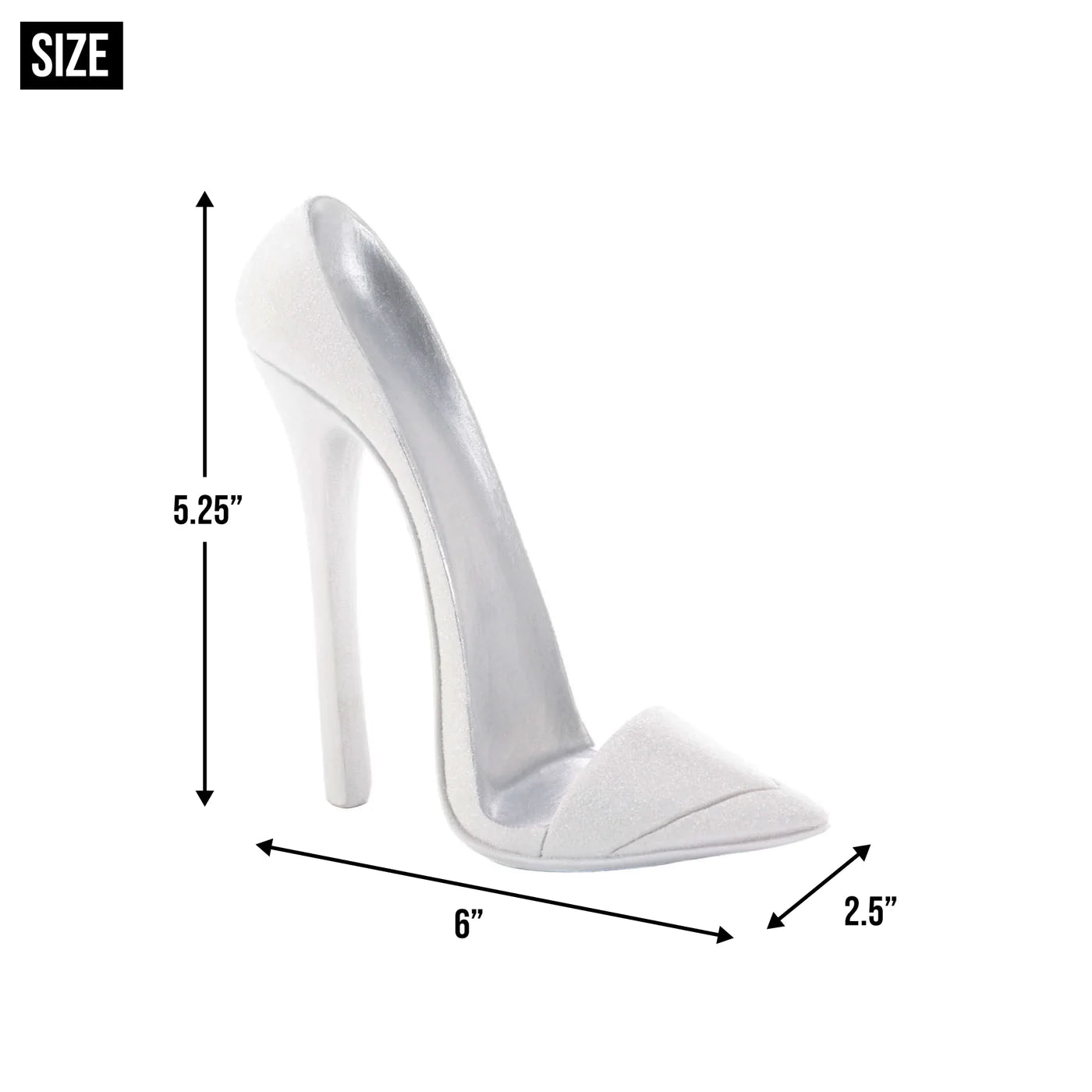 - Sparkly shoe shaped phone holder weighs 0.4 lbs. and measures 6x2.5x5.25 inches.