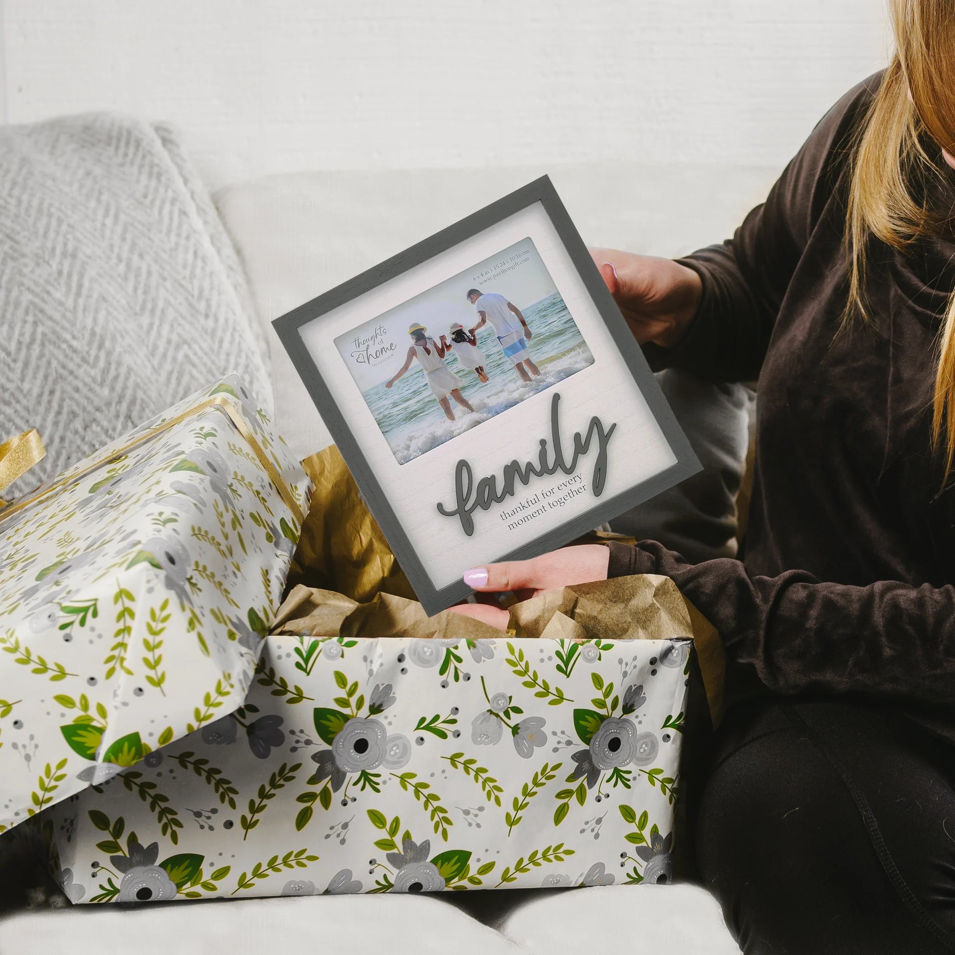 - IN-HOUSE DESIGN: The white background complements the beautiful dark gray details and the “Family Thankful For Every Moment Together” sentiment placed below the picture. This unique and stunning piece will surely draw attention with its sophisticated styling.