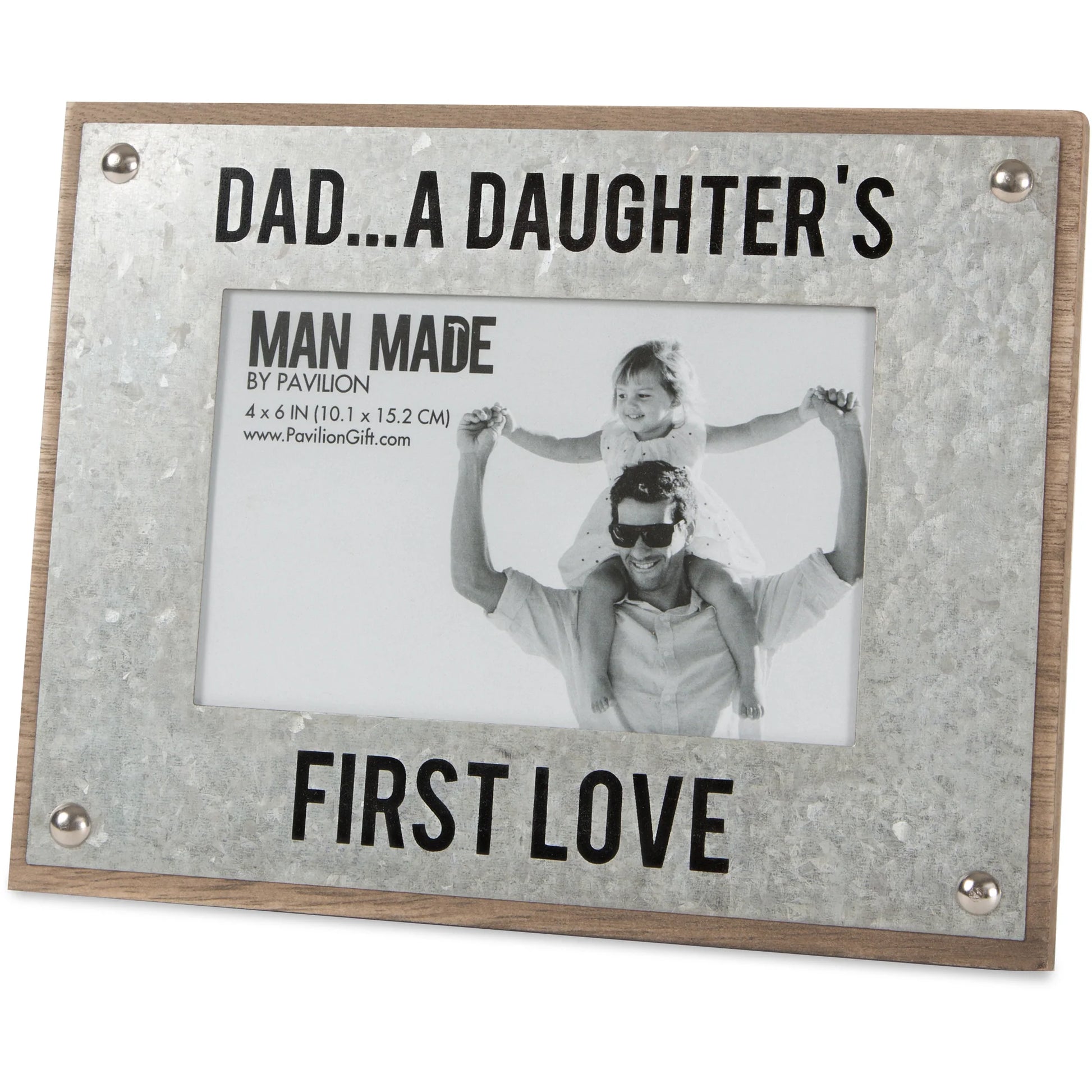 - IN-HOUSE DESIGN: "Dad... A Daughter's First Love" text is printed onto the metal section of the frame.
