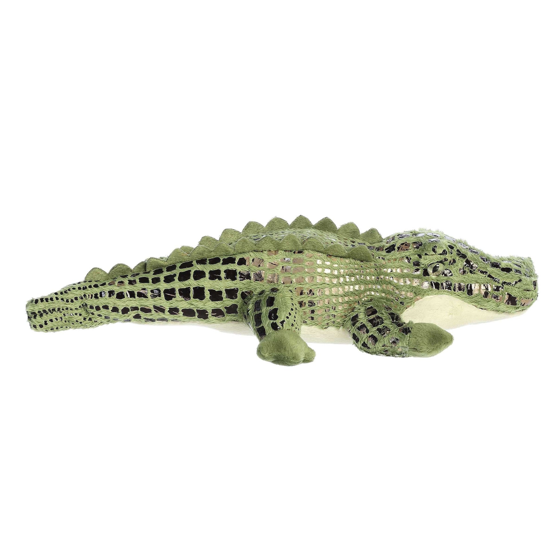 Alli the Alligator from Aurora's Flopsie collection is a delightful plush companion with a lifelike appearance and intricate detailing. This soft and cuddly alligator features textured green fur with black and gold accents, perfectly capturing its playful and charming personality. Ideal for both children and adults, Alli is perfect for snuggles, imaginative play, and adding a touch of whimsy to any space.