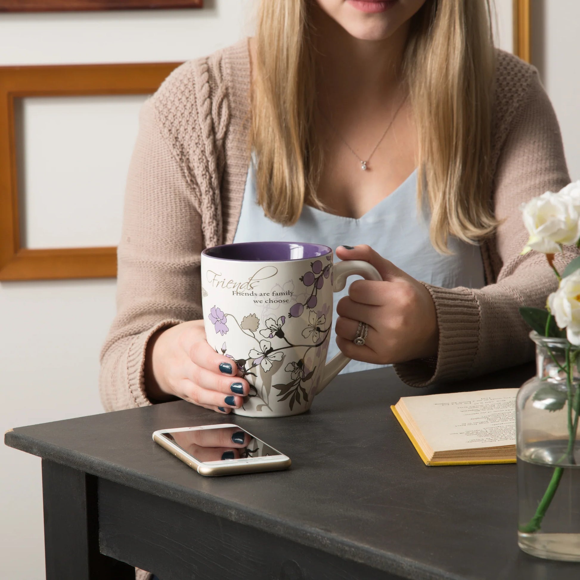 - IN-HOUSE DESIGN: The front of the mug features the heartfelt message: “Friends - Friends are family we choose.” The delicate purple and beige floral pattern adds a modern, artistic touch, making it a meaningful and stylish gift for a close friend.