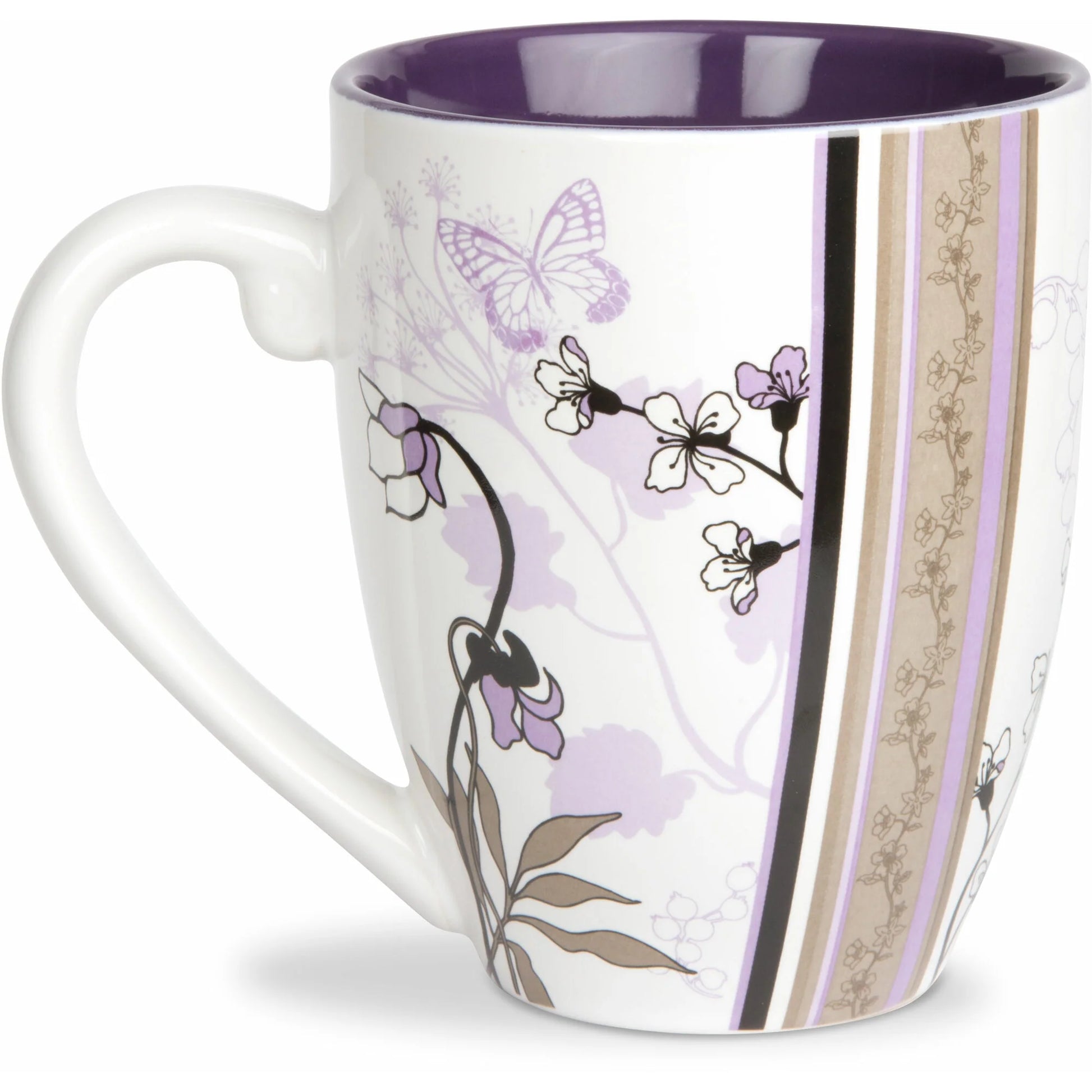 - PREMIUM QUALITY: This 20 oz. ceramic mug is crafted from high-quality stoneware, providing durability and elegance. The purple interior glaze contrasts beautifully with the white floral exterior, adding sophistication to every sip. Its sturdy handle ensures a comfortable grip, and the mug is securely packaged for safe shipping.