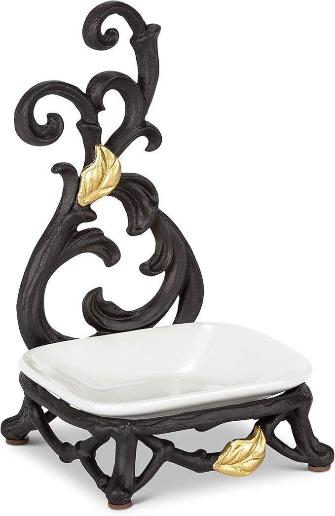 Gold Leaf Metal Spoon Rest Ceramic Stoneware Dish