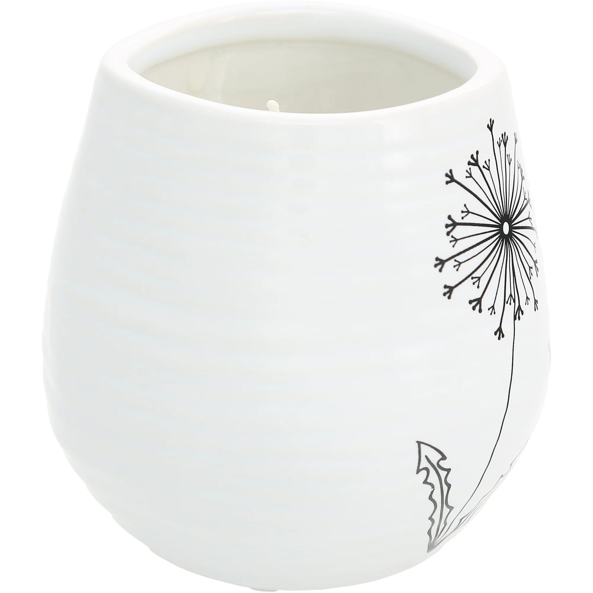 - PREMIUM QUALITY: 8 fl. oz. candle, packaged in a printed open-faced box, is made from ceramic and 100% soy wax, has a serenity scent and feet to avoid surface scratching.