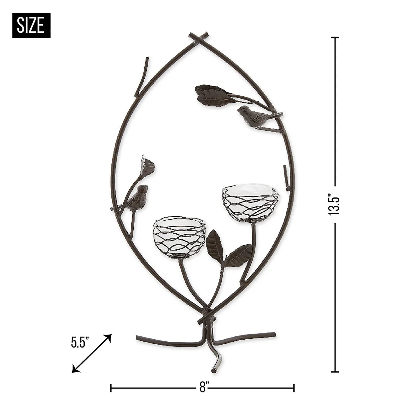Fill your home with ambient glow and a touch of whimsy with this nature inspired tealight holder! With two votive candle cups accompanied by iron birds, this lighting décor will bring light and cheer to your home.