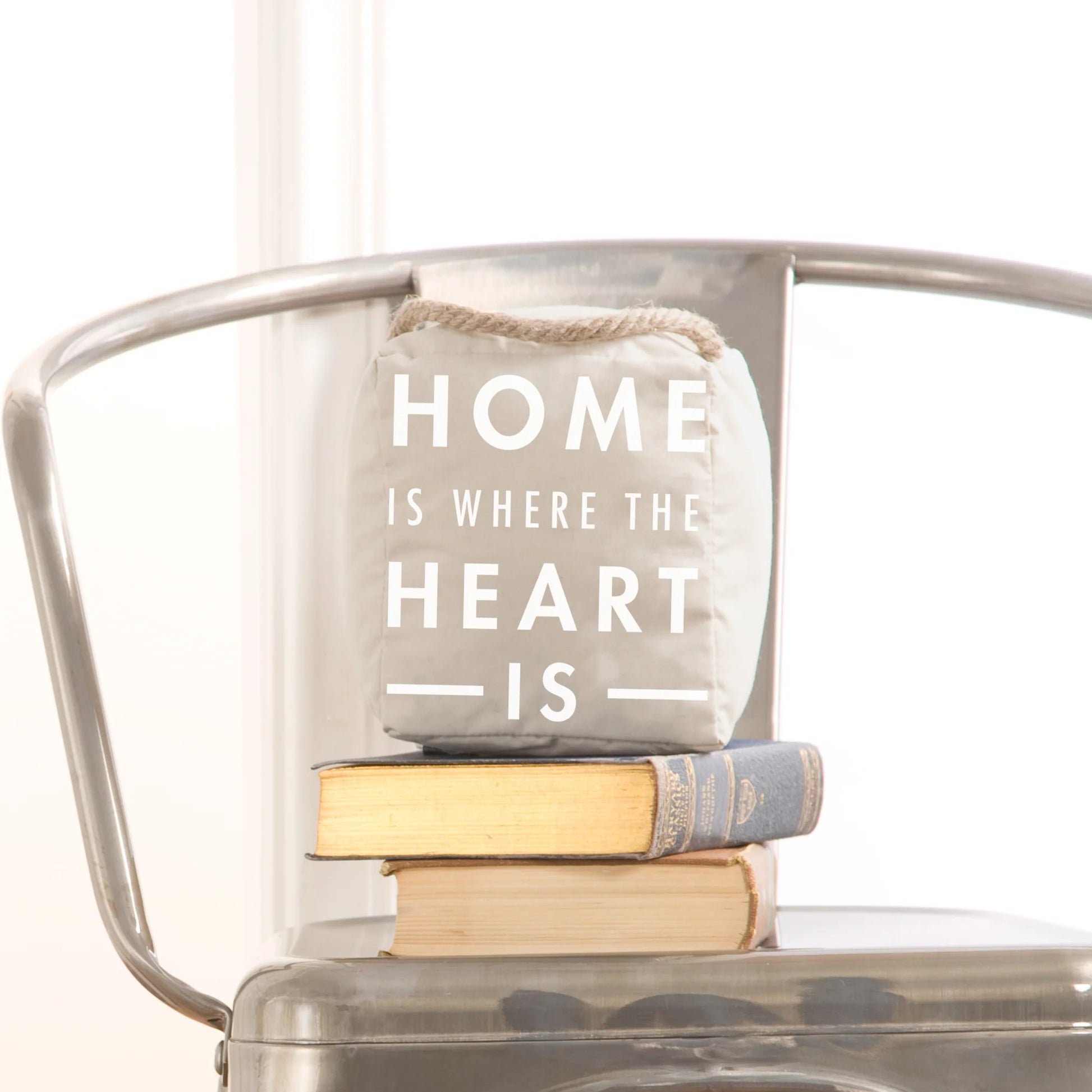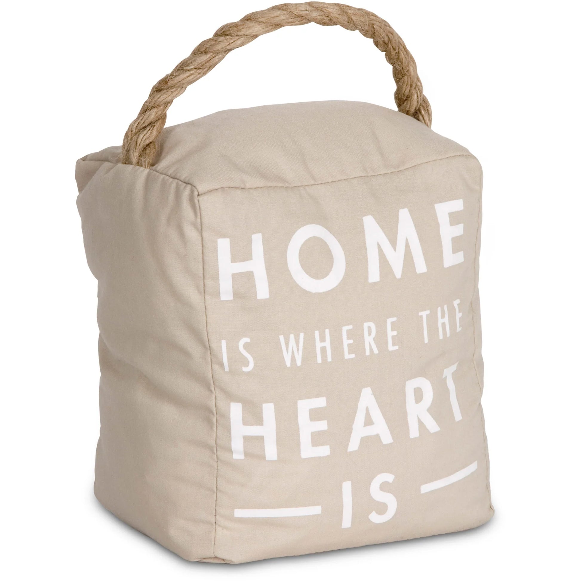 - IN-HOUSE DESIGN: "Home Is Where The Heart Is" text is printed onto the front of the door stopper.