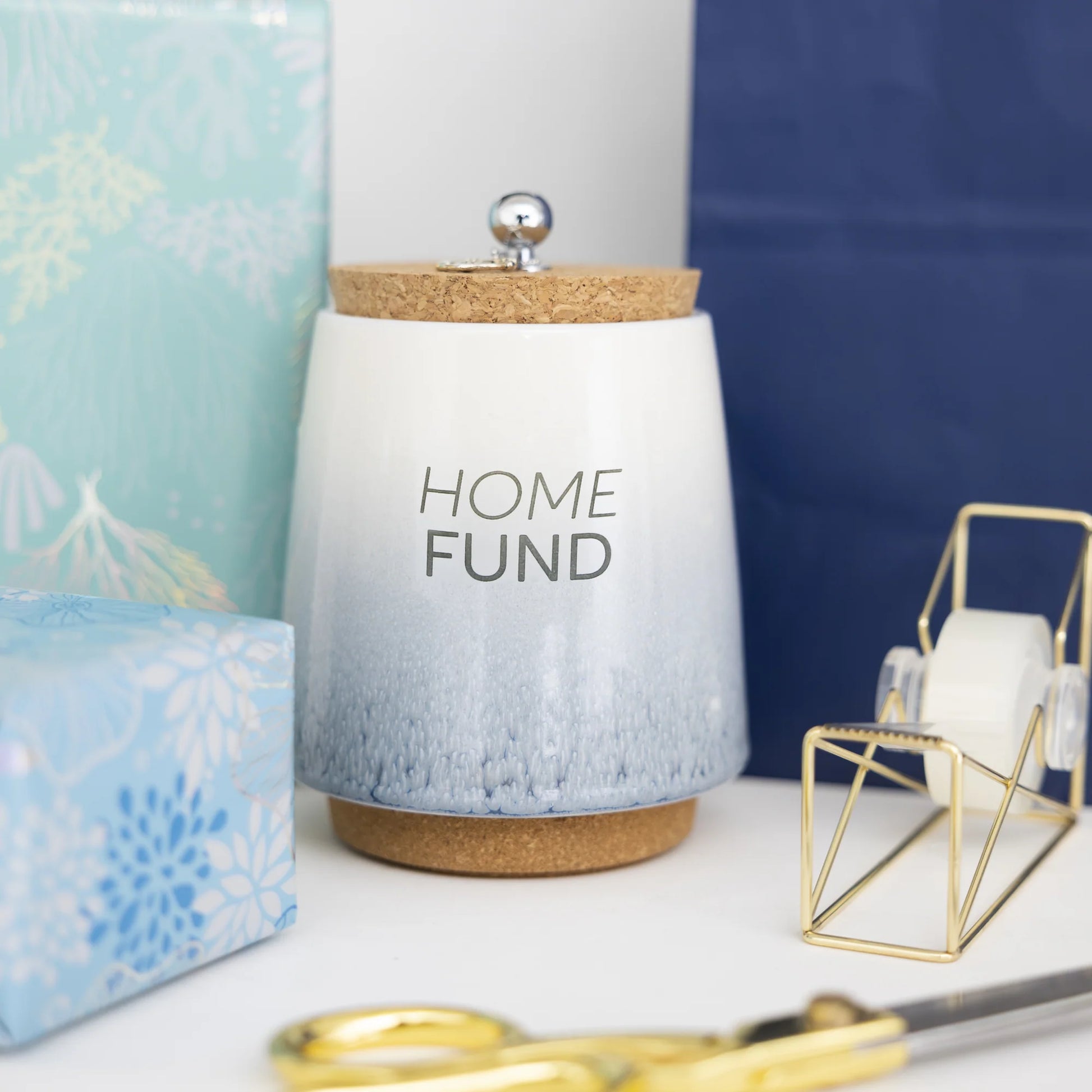 - IN-HOUSE DESIGN: The front side of the piggy bank has a simplistic "Home Fund" gray sentiment and an ombre glossy reactive dripped speckling glaze that fades from white at the top to blue at the bottom. The interior of the jar features fill lines accompanied by sentiments that are .75 inches from one another. The very bottom line "Not Enough Fund$" goes up to 1.5 inches from the base, followed by "Getting There," leading to "So Much Fund$" with "Fully Funded" at the top.