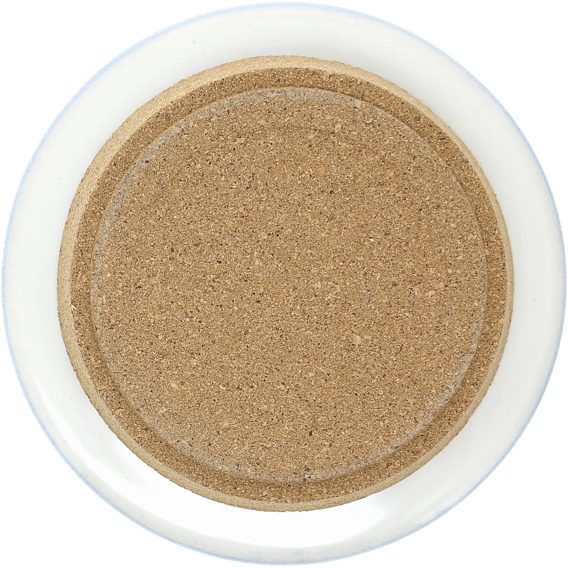 - PREMIUM QUALITY: This incredible money-holding jar is 6.5" tall. The base of the stoneware vessel is 4.5" wide, tapering to 3.5" wide towards the top, where the cork lid narrows from top to bottom to fit snuggly inside the lip of the container. A 1.75" length metal chain holds a removable house/home shaped icon keychain that can be added to your keys or left connected to the .5" wide x .75" tall rounded metal ball handle. The base is made from cork to prevent surfaces from scratching and provides an easier grip to pick up the canister.