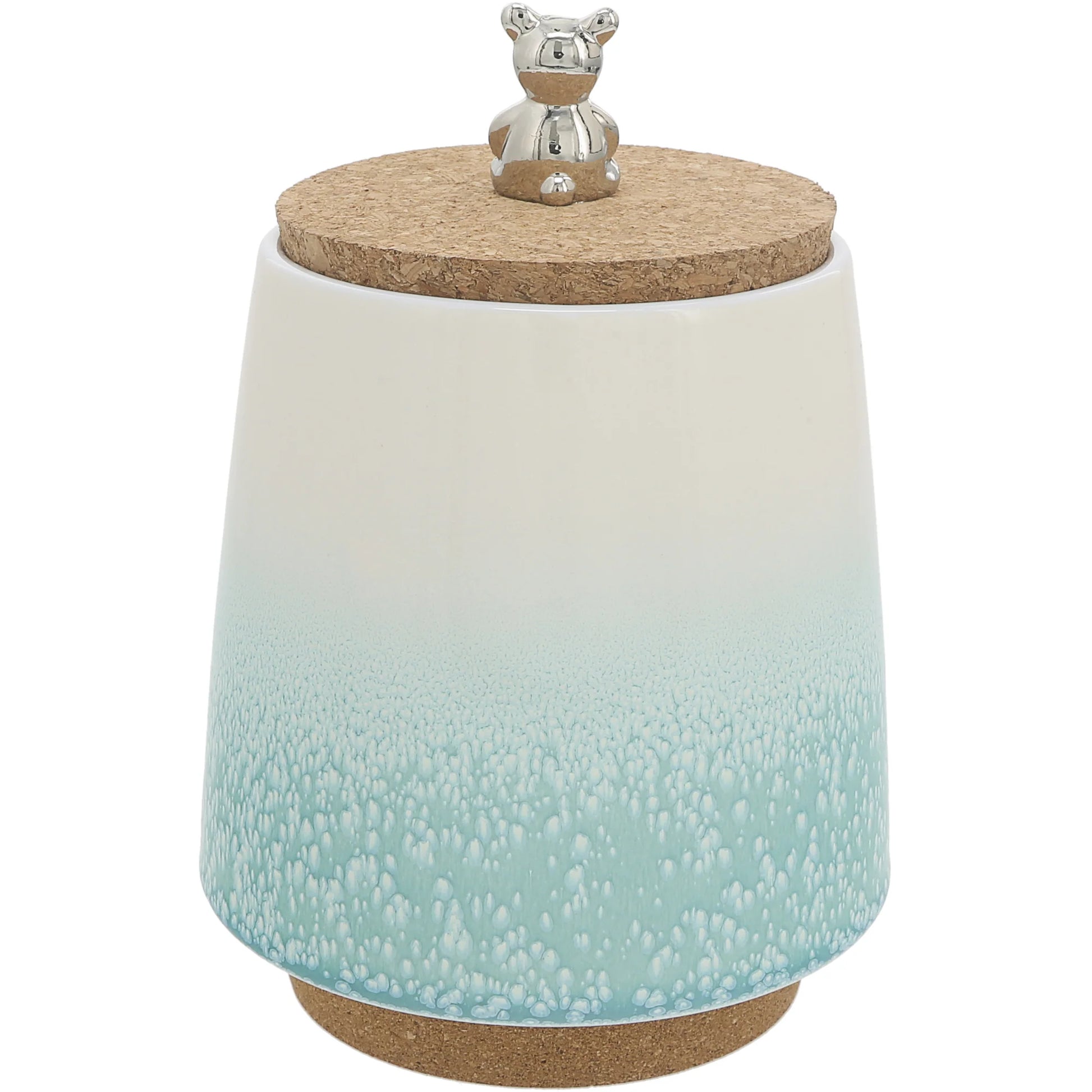 - PREMIUM QUALITY: This incredible money-holding jar is 6.5" tall. The base of the stoneware vessel is 4.5" wide, tapering to 3.5" wide towards the top, where the cork lid narrows from top to bottom to fit snuggly inside the lip of the container—Unique & cute bear handle measures 1.125" tall & .75" wide. The base is made from cork to prevent surfaces from scratching and provides an easier grip to pick up the canister.