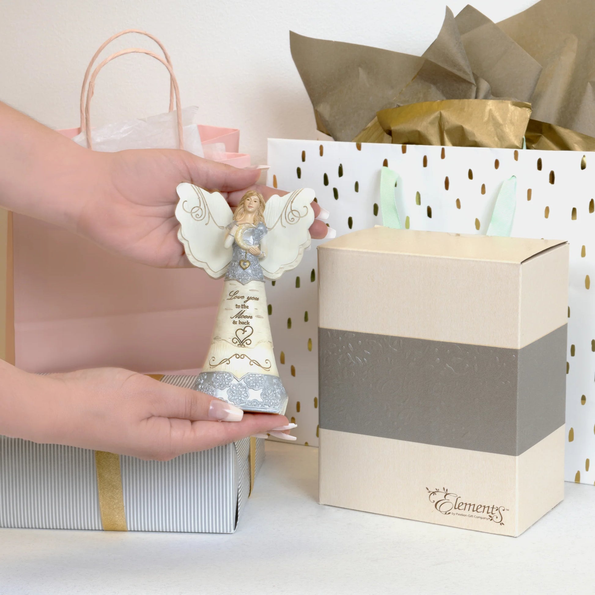 - IN-HOUSE DESIGN: "Love You To The Moon And Back" text is debossed and painted onto the front of the angel, alongside an intricate silver design and moon. The foam pads on the bottom to prevent surfaces from being scratched.