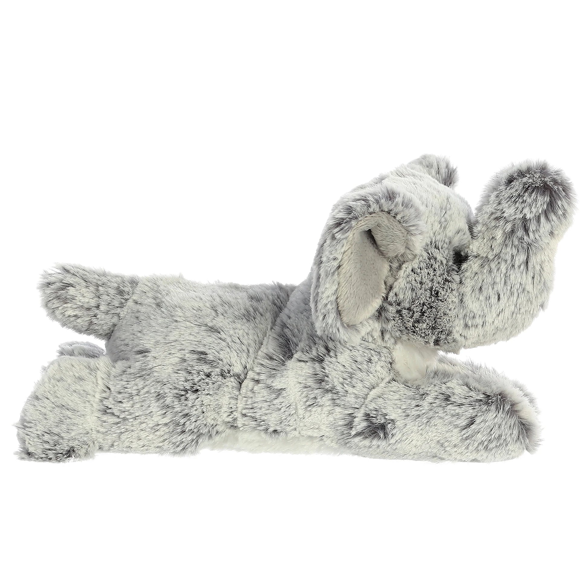 Mini Flopsies make a fine job of creating a wide range of creative and ambitious little animal-based plush toys This Leroy Elephant is made of soft light gray and white-tipped fur