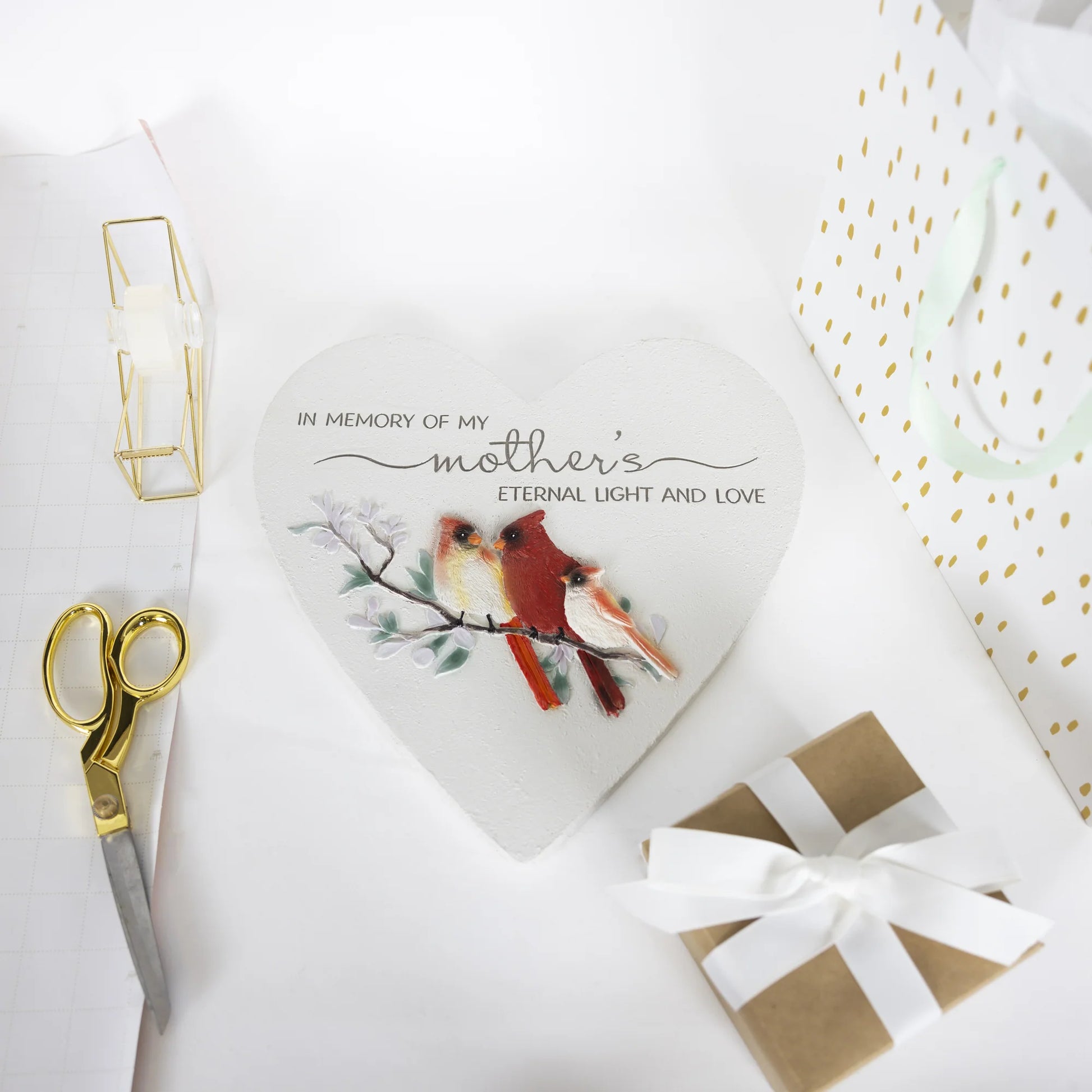 - IN-HOUSE DESIGN: The stone bears a heartfelt sentiment: "In Loving Memory Of My Mother's Eternal Light And Love." The dark gray debossed text serves as a poignant reminder of the enduring love and cherished memories shared with your mother. Adding to its beauty, a hand-painted embossed trio of cardinals perches upon a delicate floral tree branch, symbolizing the presence of loved ones watching over us. This memorial stone can be placed in your garden or any sacred space, providing solace and a lasting tribute to the eternal bond you shared with your mother.