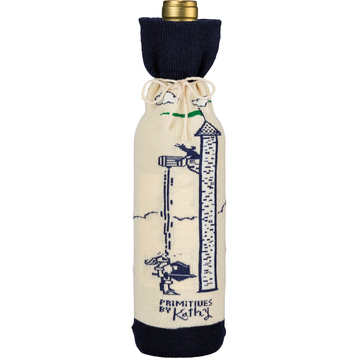 - A creative alternative for a traditional gift bag, a washable and re-useable "Alcohol - Because... No Great Story Ever Started With Salad" knit bottle sock with salad and dragon front designs, and reverse medieval fairy tale characters drinking out of a tower design.
